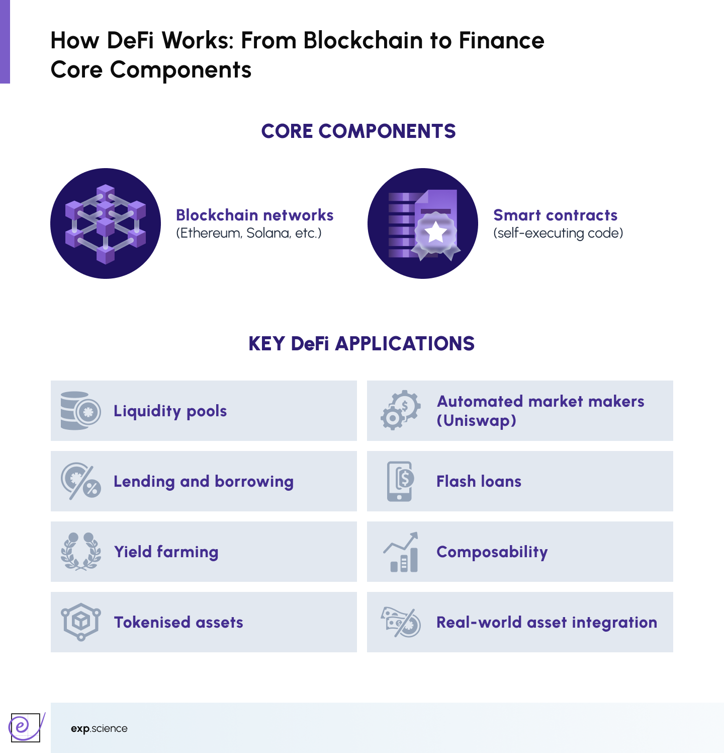 Several blockchains serve as infrastructure for DeFi applications, including Ethereum, Hedera, Solana, Avalanche, and others. These networks act as decentralised computers that process smart contracts. Unlike traditional banking systems that rely on human intermediaries to facilitate transactions, DeFi protocols operate through code that is publicly auditable and immutable once deployed.