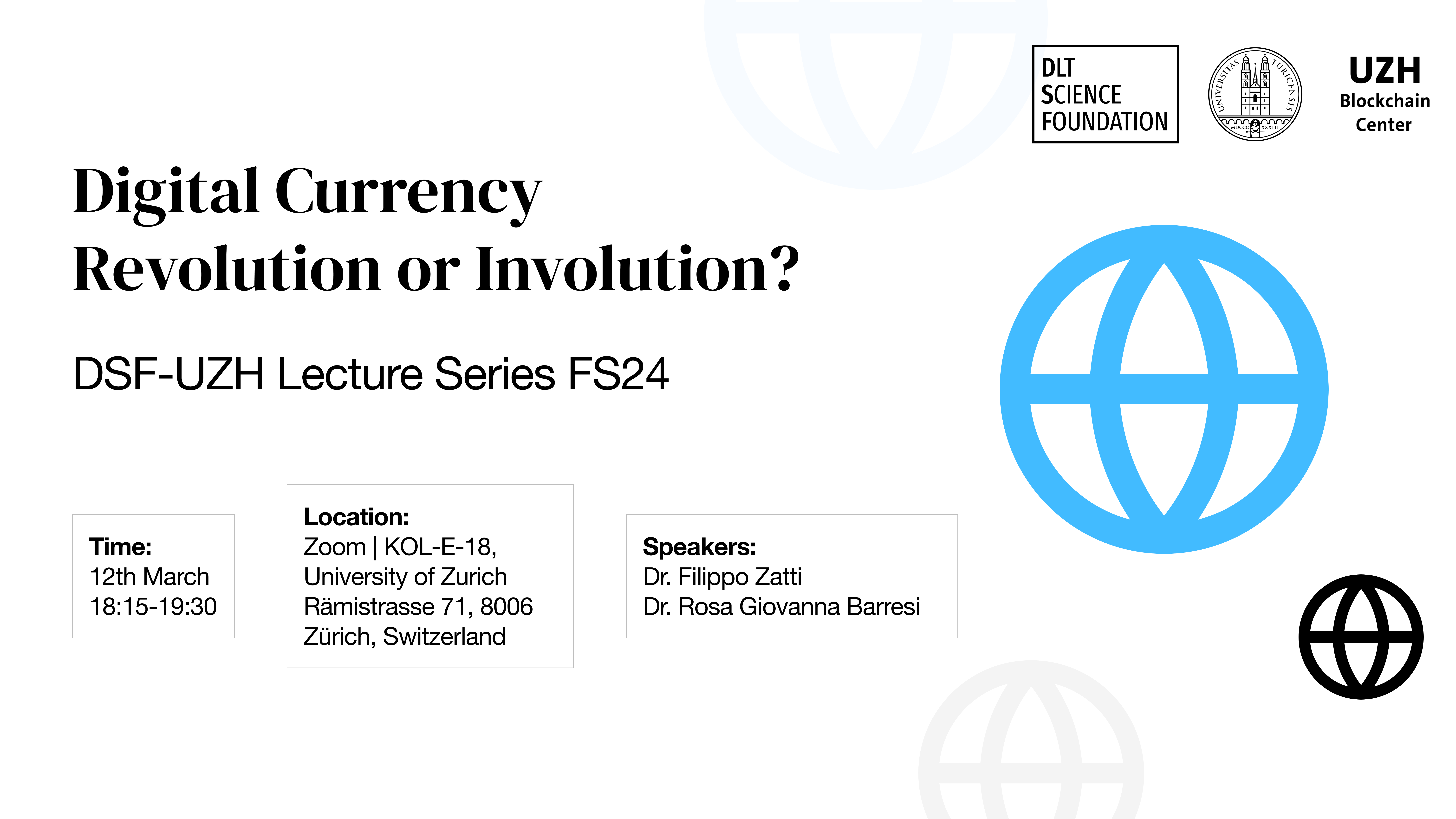 The DLT Science Foundation, in collaboration with the UZH Blockchain Center, is honoured to host the lecture "Digital Currency Revolution or Involution?". This event is a part of the DSF-UZH Blockchain Center Spring 2024 Lecture Series.